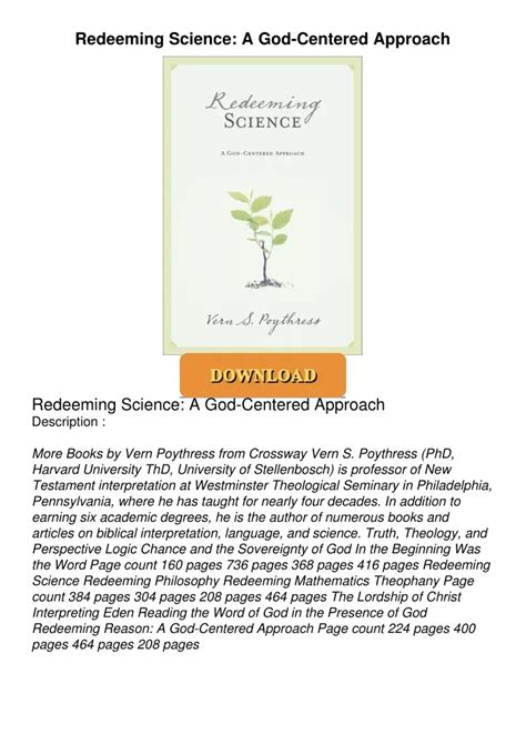 Download PDF Online Redeeming Science: A God-Centered Approach Get Books Without Spending any Money! PDF